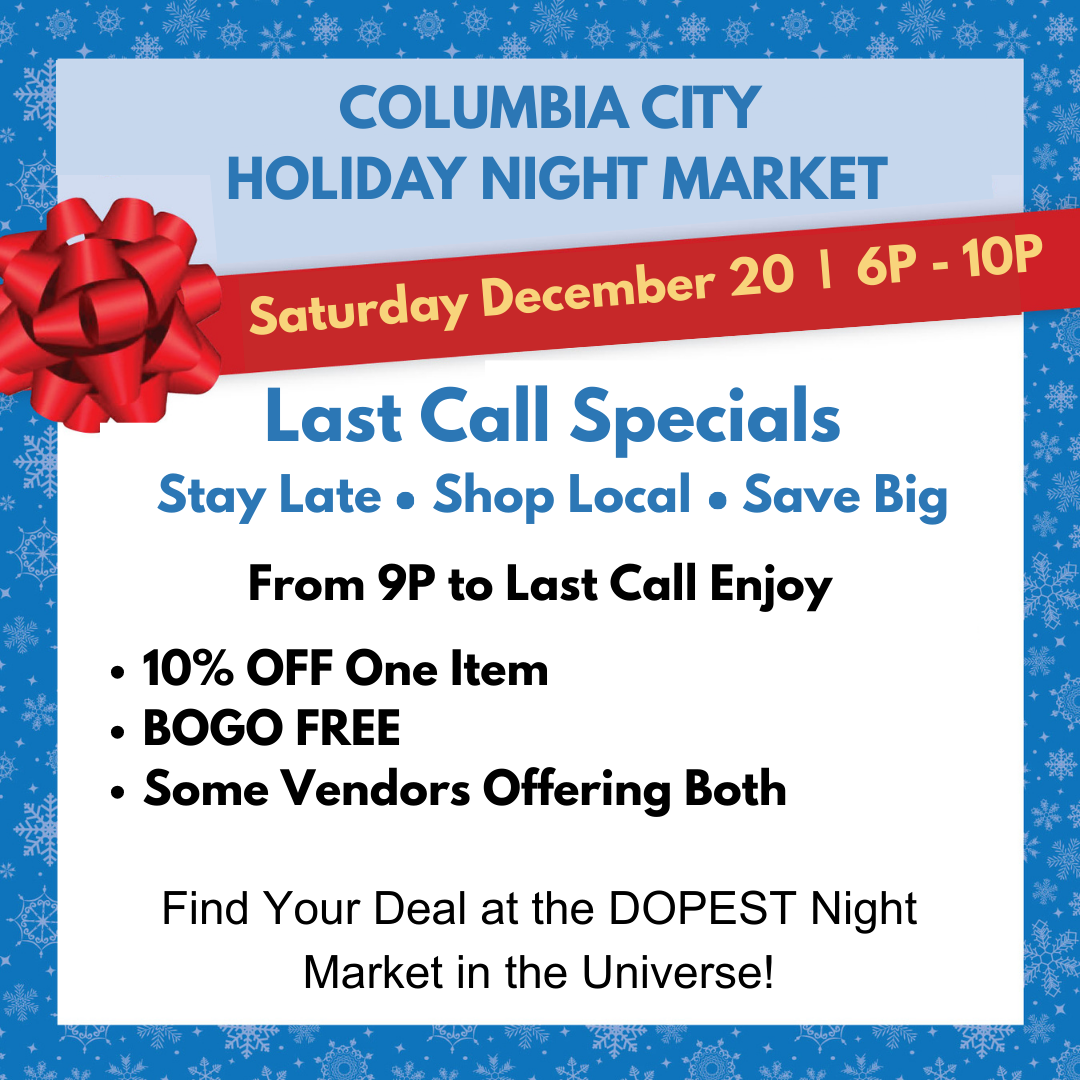 The Columbia City Night Market is held on the third Saturday of every month from 6pm - 10pm!